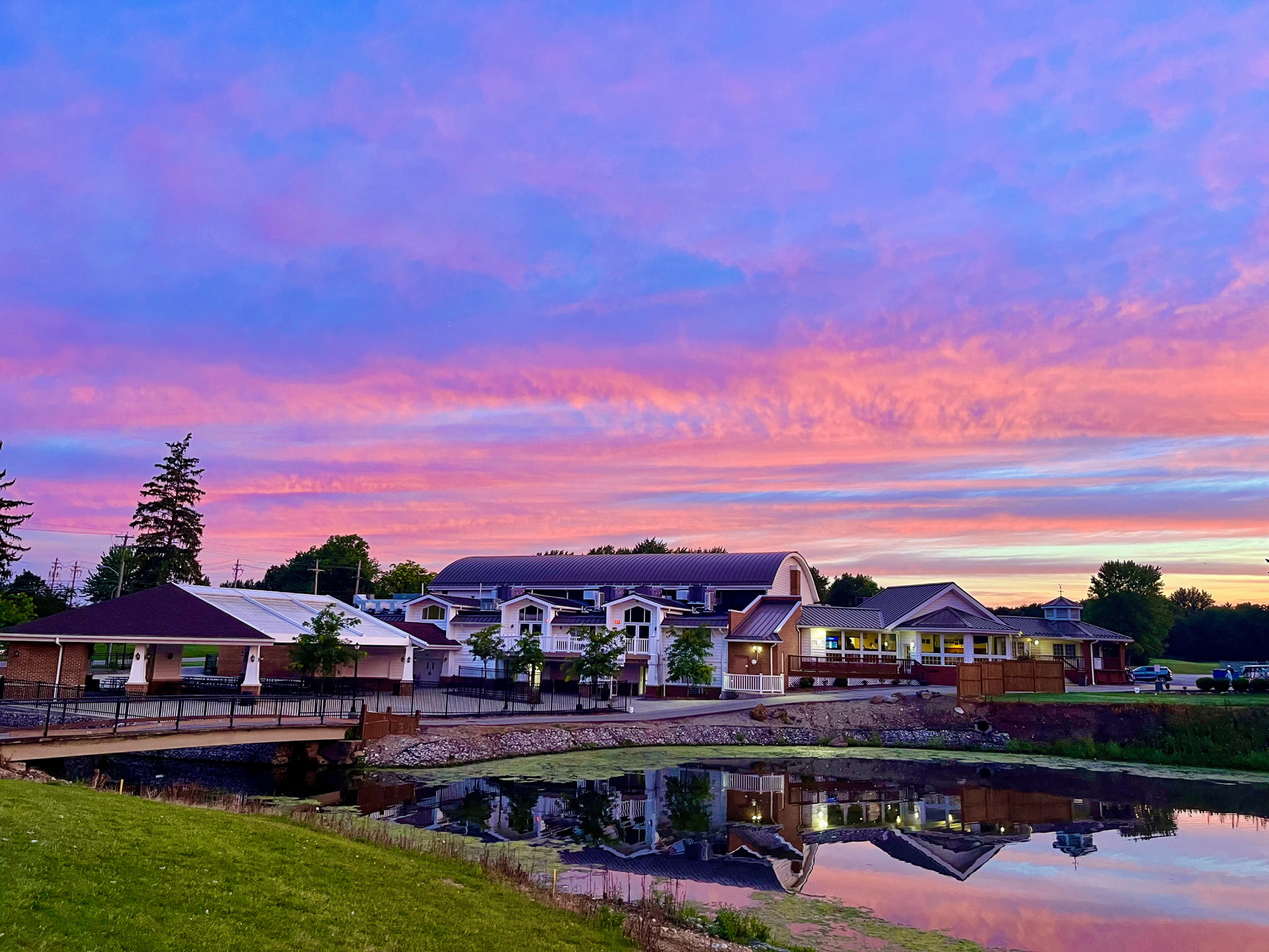 Stick around after golf to enjoy the large clubhouse with spectacular views. Renovated in 2002, golfers of all ages can enjoy their “19th Hole” overlooking the stunning pond and first tee, enjoy a full bar, and weekday evening grill.